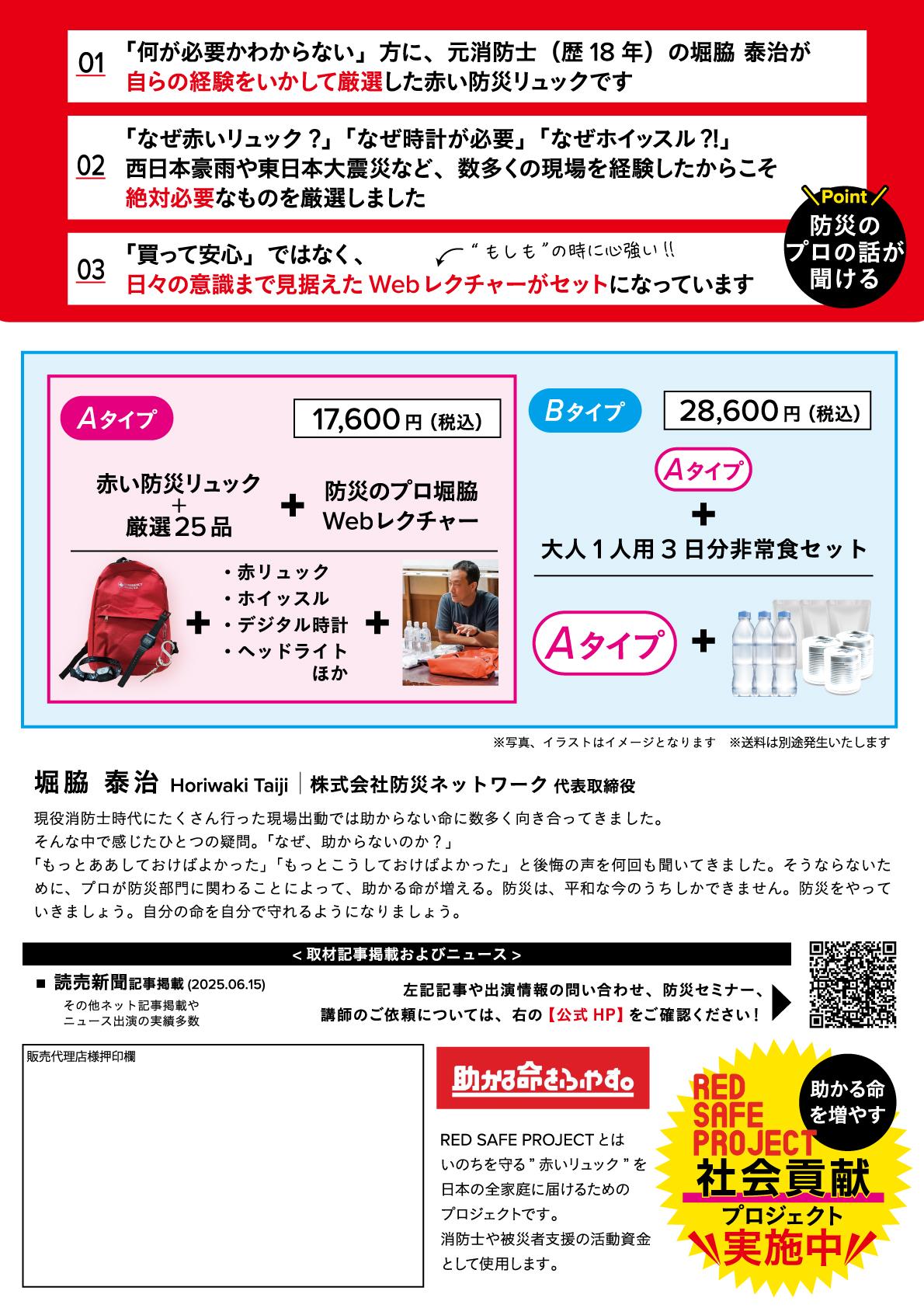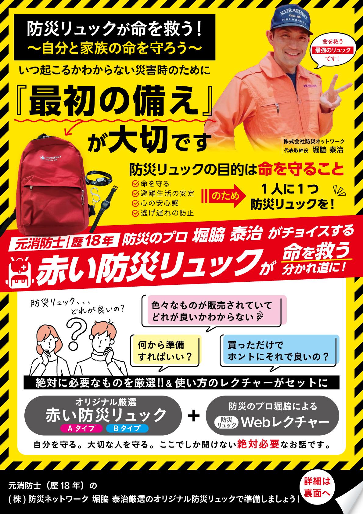 赤い防災リュックはオンラインで購入いただけます。